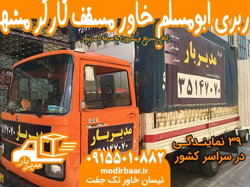 اگر ساکن منطقه ابومسلم مشهد هستید و به دنبال باربری معتبر برای اسبابکشی، حمل اثاثیه یا انتقال کالا هستید، باربری ابومسلم یکی از بهترین گزینهها برای شماست. این مجموعه با ارائه خدمات حرفهای و تیمی متخصص، توانسته اعتماد بسیاری از مشتریان را در حوزه حمل و نقل شهری و بینشهری جلب کند.