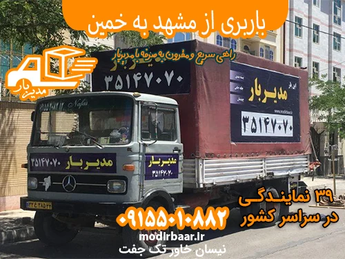 جابجایی بار از مشهد به خمین بدون شک نیاز به تجربه، دقت و سیستم مدیریت دقیق دارد. چه بخواهید اسباب‌کشی انجام دهید. چه کالاهای تجاری یا شخصی به مقصد خمین ارسال کنید. انتخاب یک باربری معتبر و متخصص می‌تواند خیال شما را از همه جهات آسوده کند.