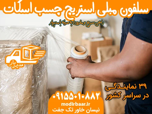 سلفون مبلی، استرچ، چسب اسکات در مشهد؛ بسته‌بندی حرفه‌ای با ابزارهای تخصصی