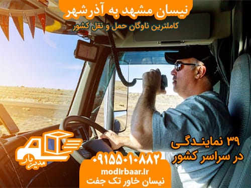 خدمات متنوع مدیربار برای باربری نیسان از مشهد به آذرشهر