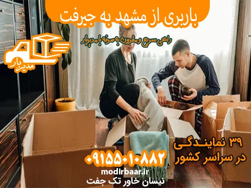 مسیر باربری از مشهد به جیرفت، به دلیل مسافت زیاد، تنوع آب‌وهوایی و نوع بارهای قابل حمل، نیاز به یک شرکت باتجربه و حرفه‌ای دارد. مدیربار با ارائه خدمات جامع از بسته‌بندی بگیر تا صدور اسناد قانونی، حمل ایمن و سریع را در این مسیر تضمین می‌کند. اگر به‌دنبال آرامش، اطمینان و دقت در اسباب‌کشی یا حمل بار از مشهد به جیرفت هستید، مدیربار همراه مطمئن شماست.