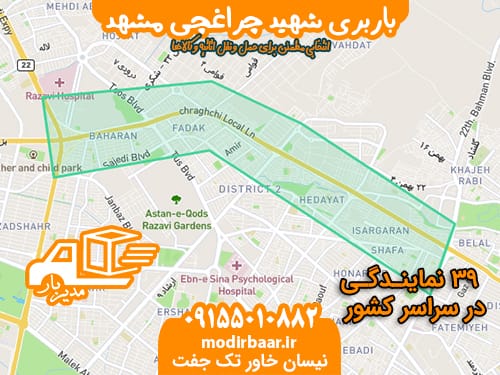 خیابان شهید چراغچی یکی از خیابانهای اصلی و شلوغ مشهد است که نام آن به یاد شهیدان دفاع مقدس انتخاب شده است. این منطقه به دلیل موقعیت جغرافیایی خاص خود، یکی از پر ترددترین محلههای مشهد محسوب میشود و باربریهای مختلفی در این منطقه مشغول به فعالیت هستند. دسترسی راحت به مراکز تجاری، بیمارستانها و محلههای دیگر، این منطقه را به مکانی مناسب برای خدمات حمل و نقل تبدیل کرده است.
