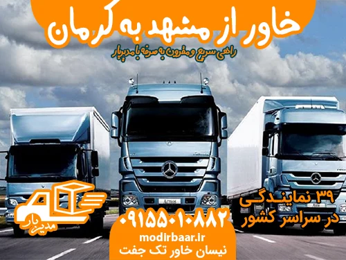 حملونقل با خاور از مشهد به کرمان | باربری معتبر با خدمات کامل و نرخنامه شفاف