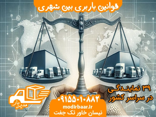 باربری بین شهری یکی از بخش‌های مهم صنعت حمل و نقل است که شامل انتقال کالا و اثاثیه از یک شهر به شهر دیگر می‌شود. برای انجام این فرآیند به صورت قانونی و ایمن، قوانینی وجود دارد که همه افرادی که در این حوزه فعالیت دارند، باید از آن پیروی کنند. باربری بین شهری به ویژه در ایران، تحت قوانین و مقررات خاصی قرار دارد که هدف اصلی آن اطمینان از ایمنی بار، زمان‌بندی دقیق، و رعایت حقوق مشتریان است. در این مقاله به بررسی این قوانین پرداخته و چگونگی تطابق آنها با خدمات “مدیربار” را توضیح می‌دهیم.