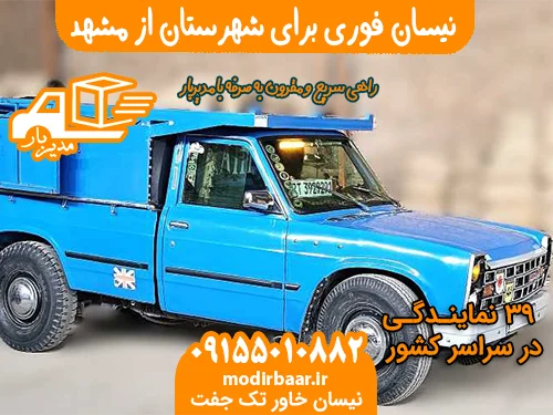 ارسال فوری نیسان برای شهرستان از مشهد با سامانه هوشمند مدیربار