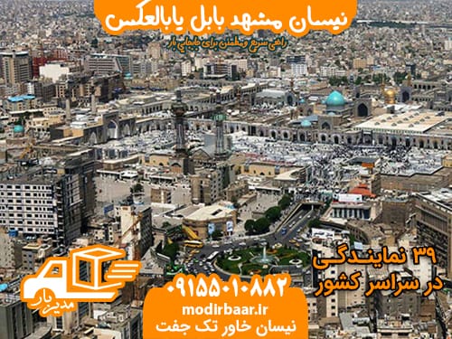 مسیر بین مشهد و بابل، یکی از مسیرهای پرطرفدار برای جابجایی بار است. این دو شهر از لحاظ اقتصادی و فرهنگی اهمیت زیادی دارند و حجم زیادی از کالاها و اثاثیه بین این دو شهر جابجا می‌شود. نیسان‌های مدیربار با آگاهی از وضعیت جاده‌ها و مسیرها، بهترین و سریع‌ترین مسیرها را انتخاب کرده و بار شما را در مدت زمان کوتاهی به مقصد می‌رسانند.