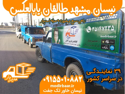 اگر به دنبال خدمات باربری نیسان مشهد طالقان یابالعکس هستید، باربری معتبر مدیربار با بهترین کیفیت و قیمت مناسب آمادگی ارائه خدمات به شما دارد. جهت کسب اطلاعات بیشتر و رزرو نیسان بار میتوانید با کارشناسان مدیربار تماس حاصل فرمایید.